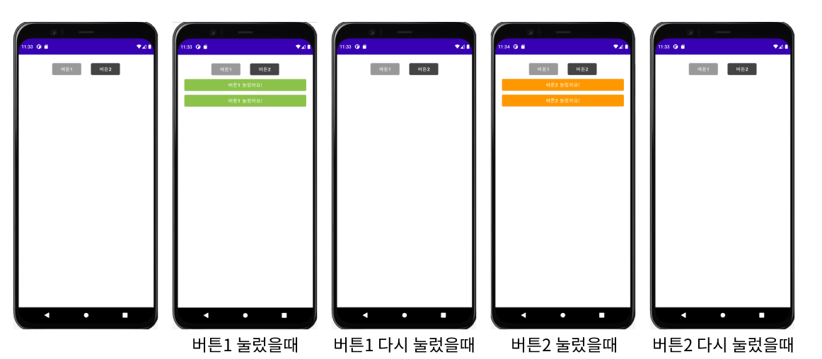 android:text="버튼1 눌렀어요!"