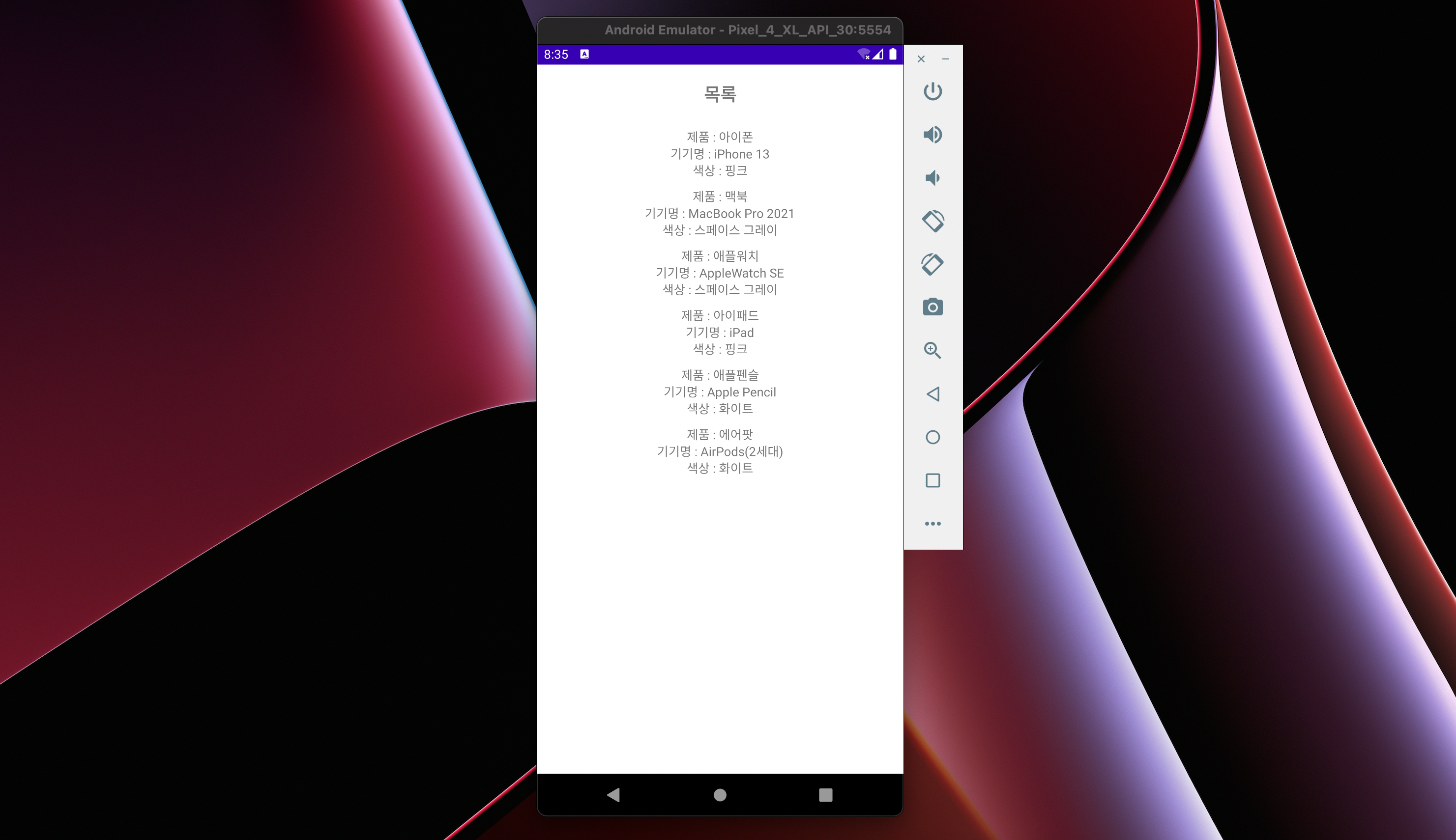 android:text="목록"